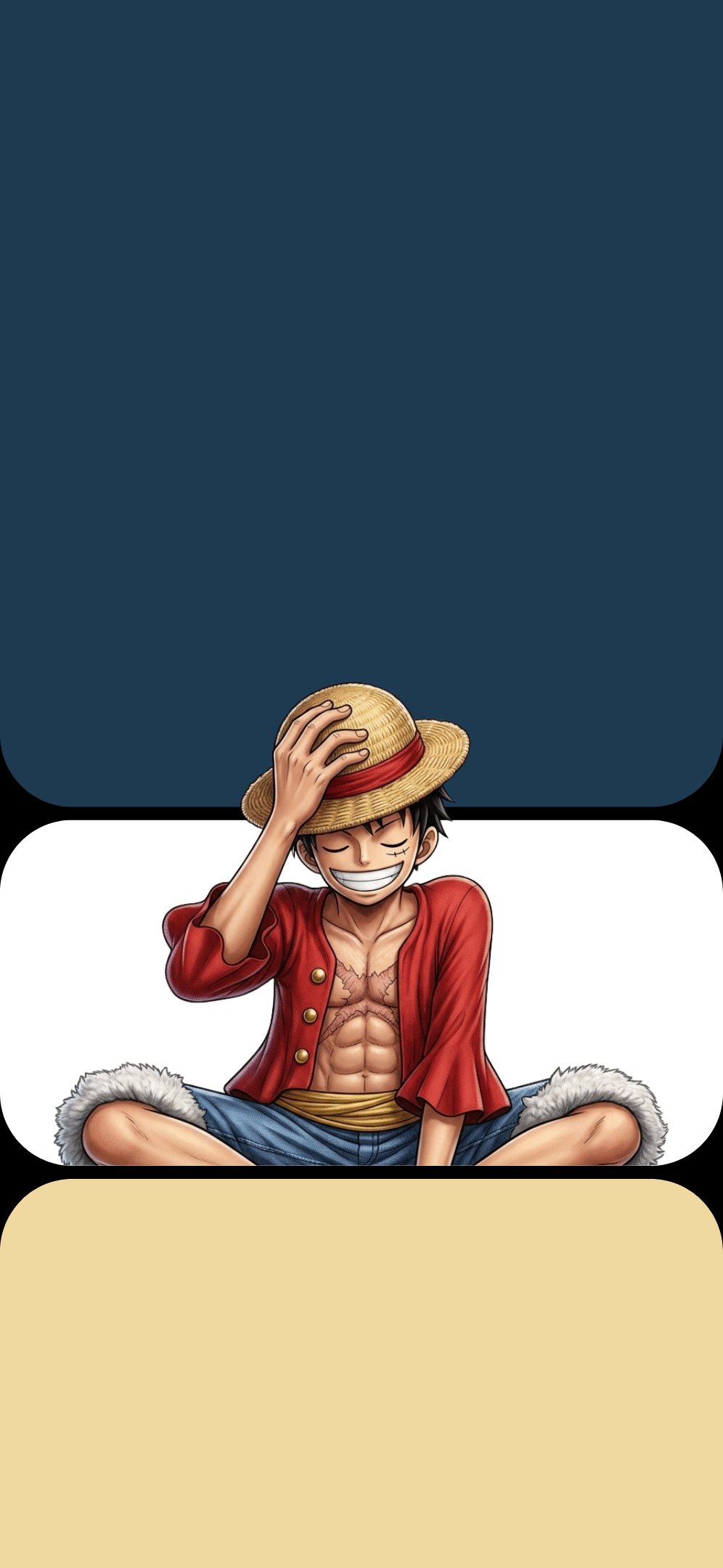 Memilih wallpaper bukan lagi soal gambar keren saja, tapi soal bagaimana gambar tersebut menyatu dengan perangkat. Desain three-block Luffy ini membuktikan bahwa semangat petualangan One Piece bisa tampil sangat elegan dan minimalis di dalam saku Anda. (UNDUH)